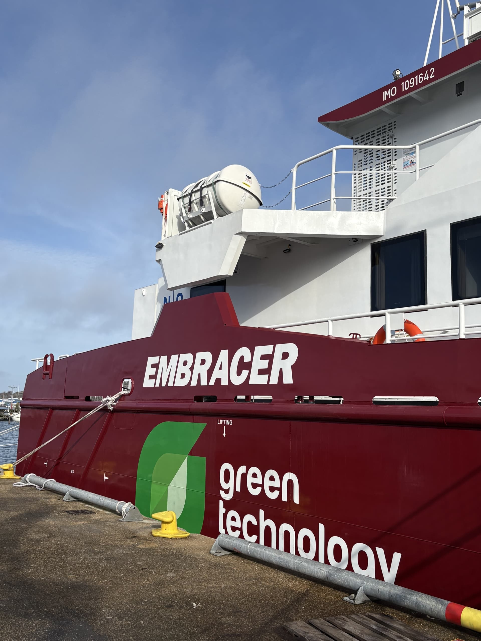 Embracer är en 36 meter lång katamaran som kan operera i flera lägen, inklusive hybrid- och helelektriskt läge. Fartyget är utrustat med elektriska motorer och ett batterisystem på 2.2 megawatt, som består av 24 batteripack fördelade mellan de två skroven.
